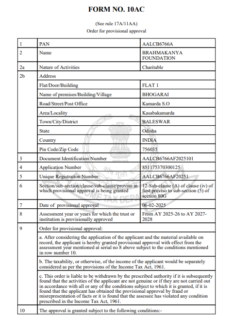 80G Registration No.