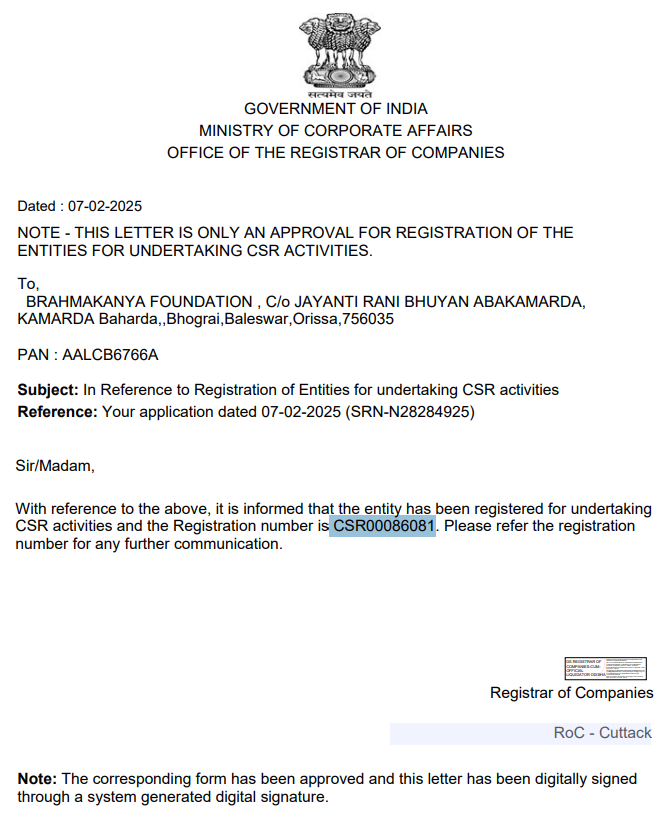 CSR Registration No.