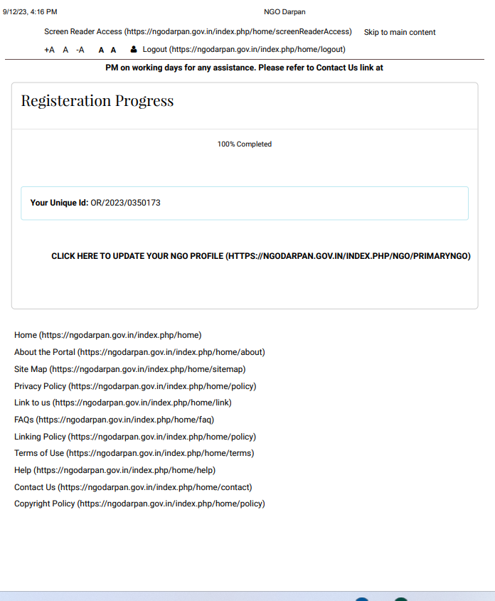NGO Darpan Registration No.
